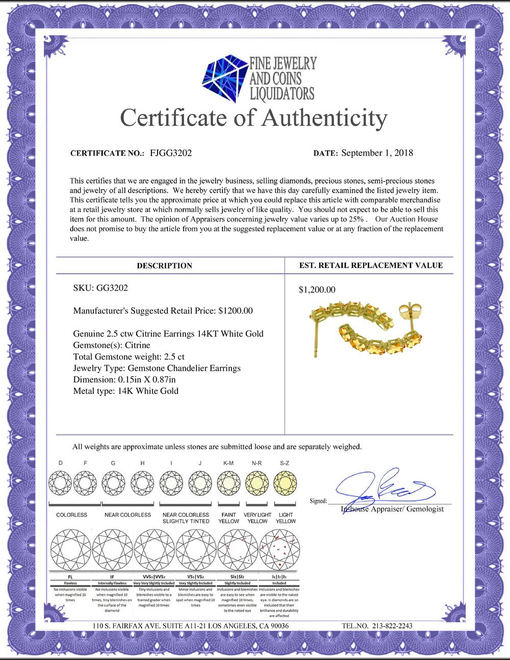 All Gia and EGL Diamonds are subject to availability due to consignors’ terms with us.