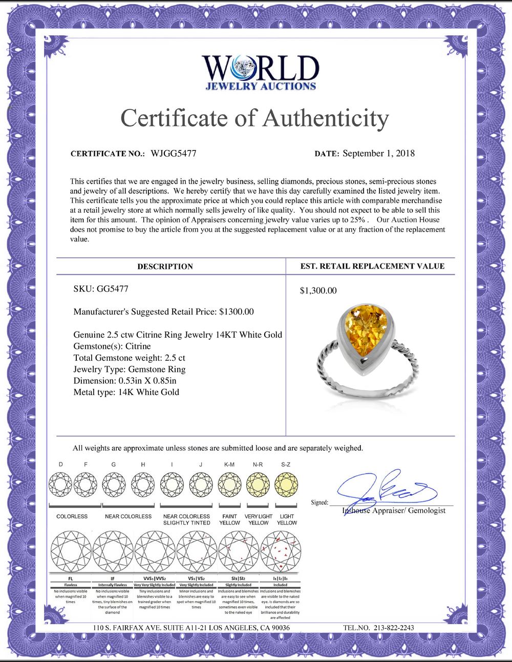 REF-40Z7N - SKU: GG5477 ---- Genuine 2.5 ctw Citrine Ring 14KT White Gold