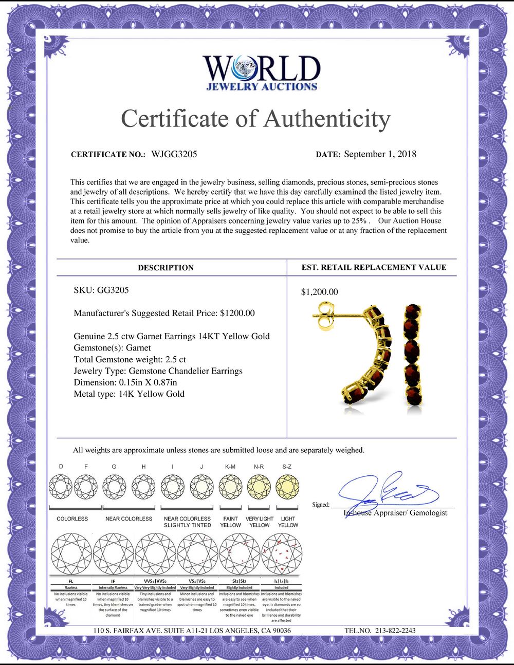 REF-37Y4F - SKU: GG3205 ---- Genuine 2.5 ctw Garnet Earrings 14KT Yellow Gold