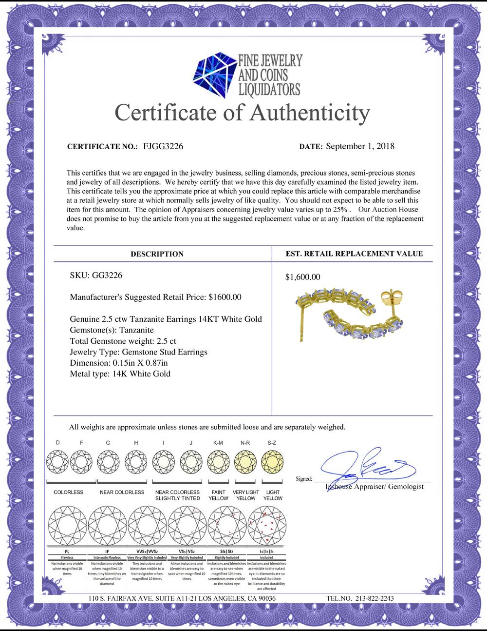 REF-52T9A - SKU: GG3226 ---- Genuine 2.5 ctw Tanzanite Earrings 14KT White Gold