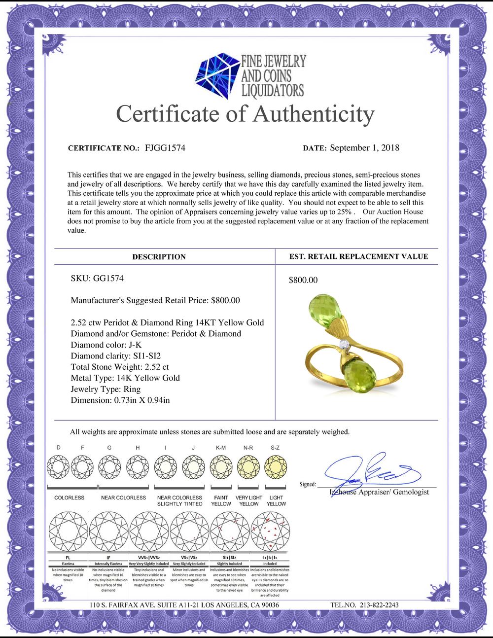 Genuine 14K Yellow Gold 2.52 ctw Peridot & Diamond Ring