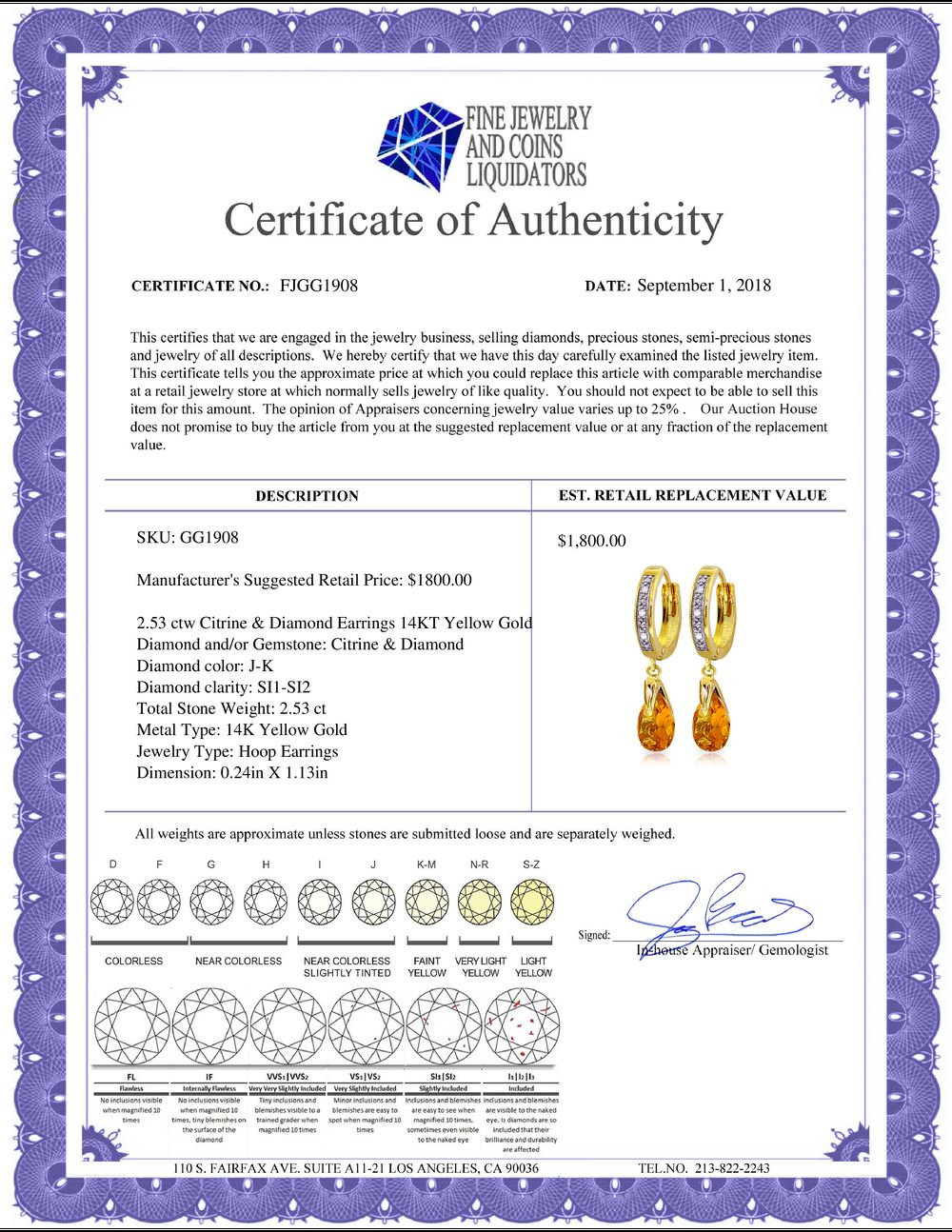 REF-58W2Y - SKU: GG1908 ---- Genuine 2.53 ctw Citrine & Diamond Earrings 14KT White Gold