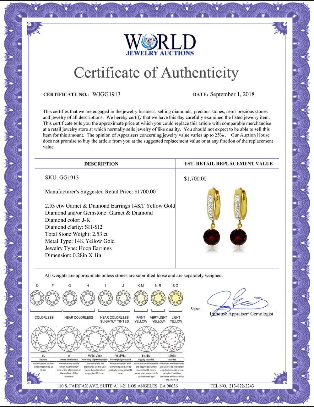 REF-54K6V - SKU: GG1913 ---- Genuine 2.53 ctw Garnet & Diamond Earrings 14KT Yellow Gold
