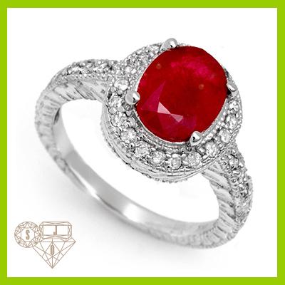 Gemstone: Ruby ; Diamond Count: 26 RD ; Diamond Weight: 0.42; Clarity: SI1-SI2H-J; Gemstone Clarity: AA - AAA: Color: Red; Gemstone Count & Color: 1 Oval Cut ; Gemstone Weight: 2.12; Metal Purity: 14KT; Metal: White-Gold ; Gold Weight (g) approx: 5.02; Ring Size 6.5; Dimension: Approx. 1/2" x 3/4"