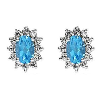 Total CTW: 2.6 ctw ; Mainstone: Topaz ; Style: Flower-Oval ; Metal Purity: 14k: Metal: Yellow or White Gold ; Weight(g): 2.1 ; Diamond Cut: 24 ROUNDCUT ; Diamond CTW 1: 0.38 ; Diamond Clarity : SI1/SI2 ; Diamond Color: G-H ; Gemstone Count: 2 OVALCUT ; Gemstone Weight/Carat: ; Gemstone Color: Blue ; Clarity/Rating: AA-AAA ; Gemstone Size(mm): approx. 7x5mm ; MSRP: $1765