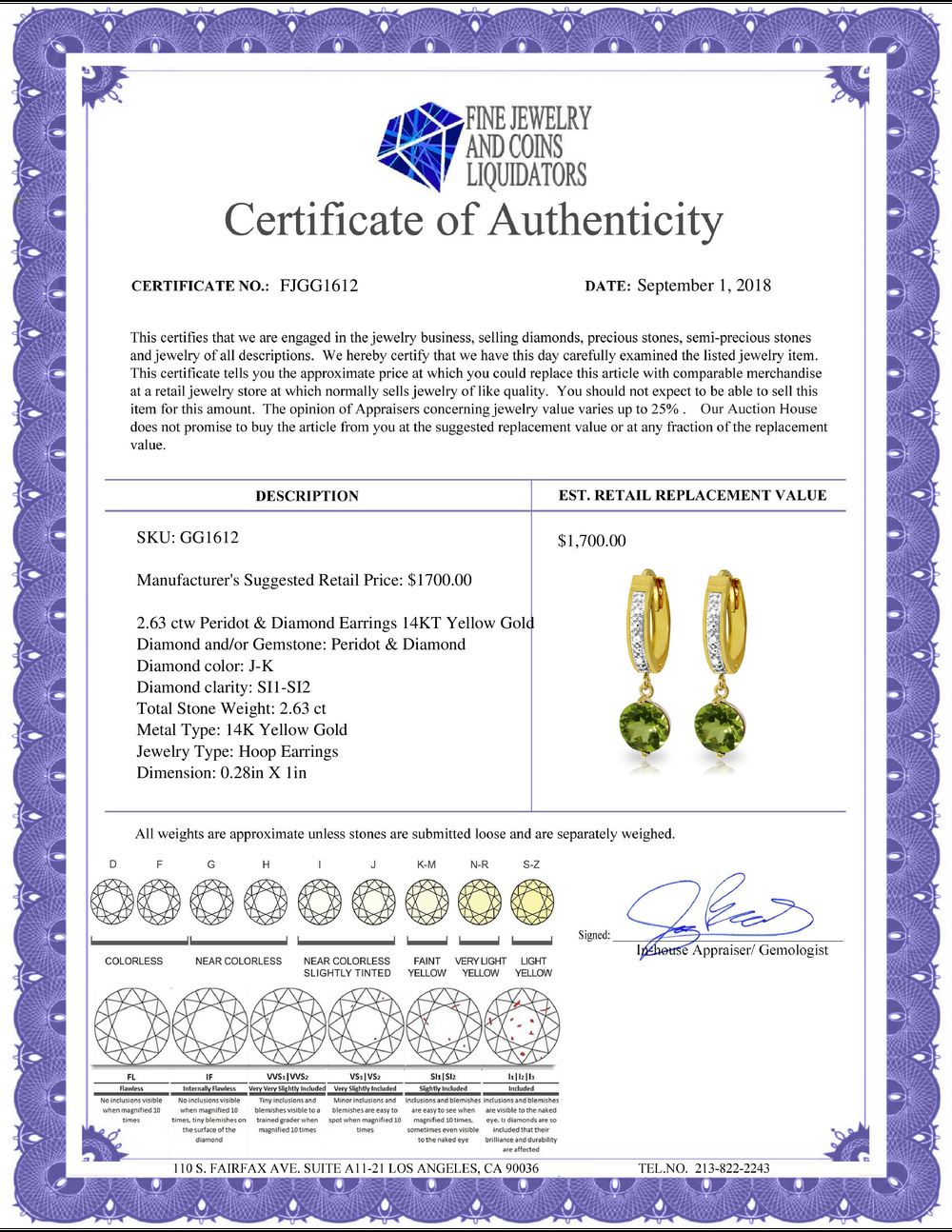 REF-56T2A - SKU: GG1612 ---- Genuine 2.63 ctw Peridot & Diamond Earrings 14KT White Gold
