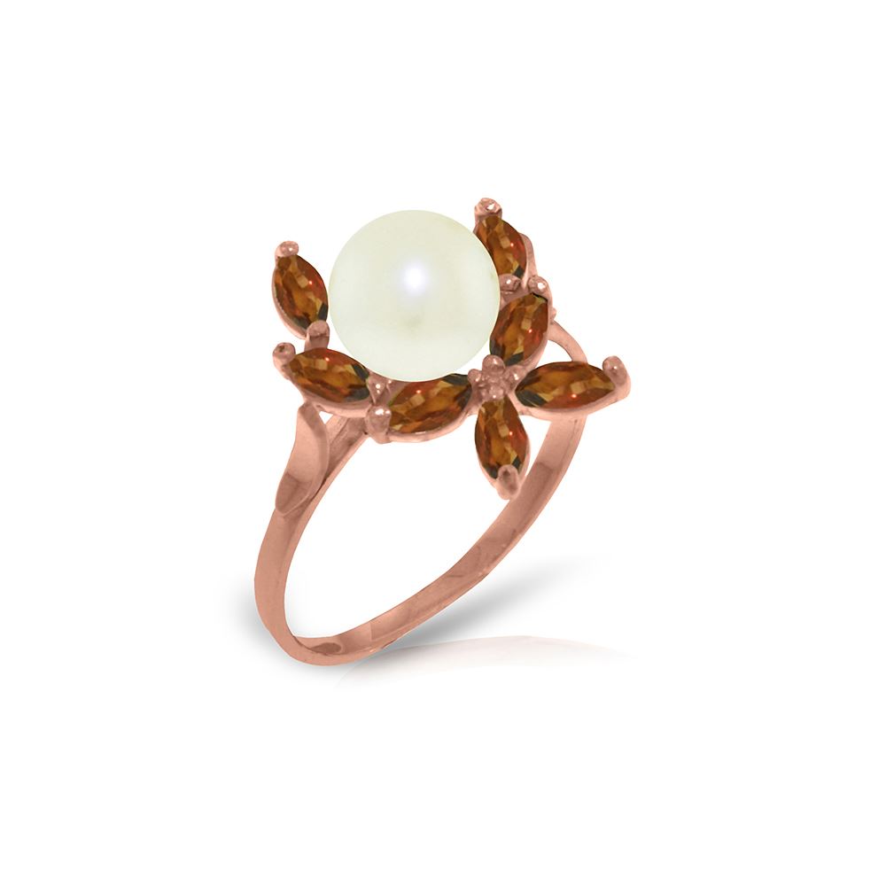 Genuine 14K Rose Gold 2.65 ctw Pearl & Garnet Ring