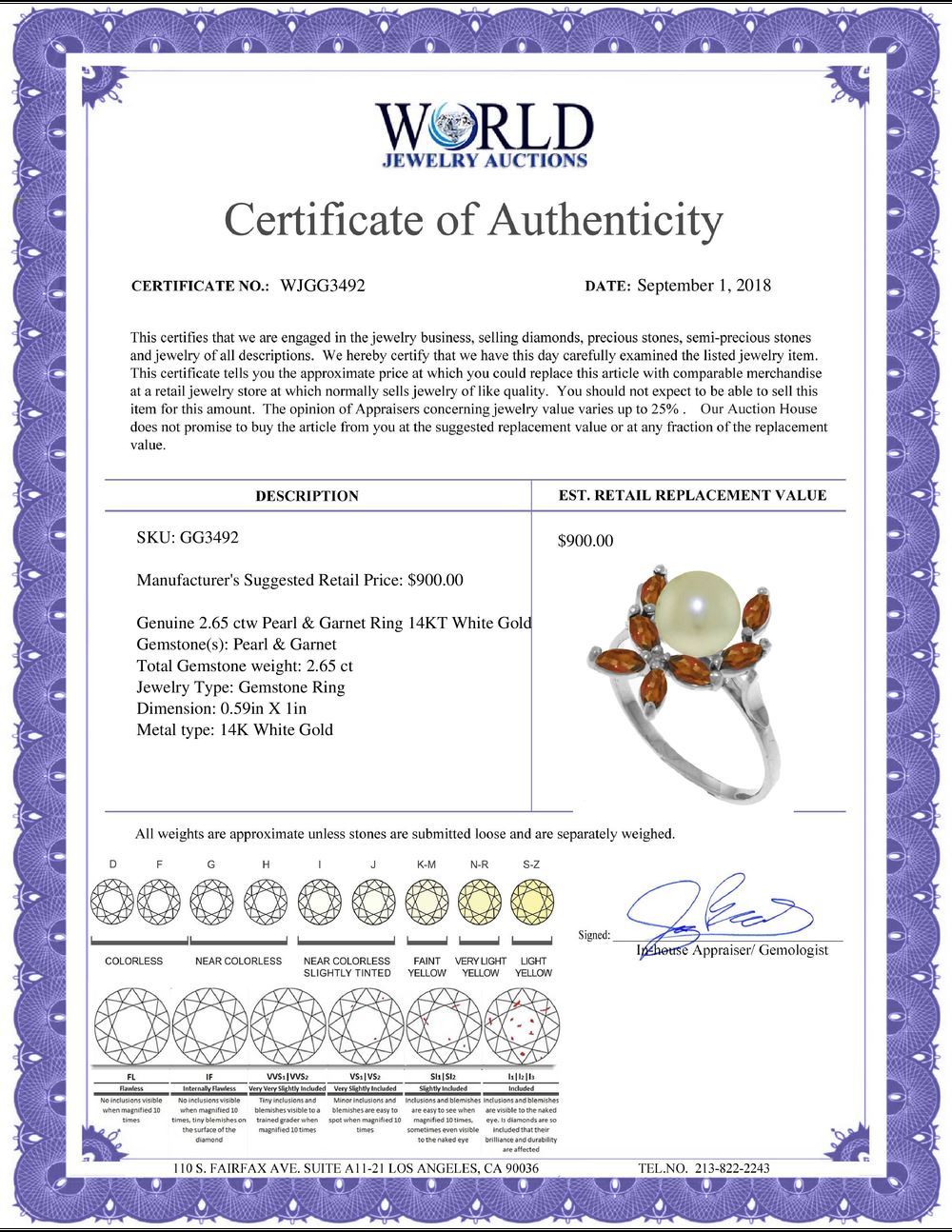REF-28V5W - SKU: GG3492 ---- Genuine 2.65 ctw Pearl & Garnet Ring 14KT Rose Gold