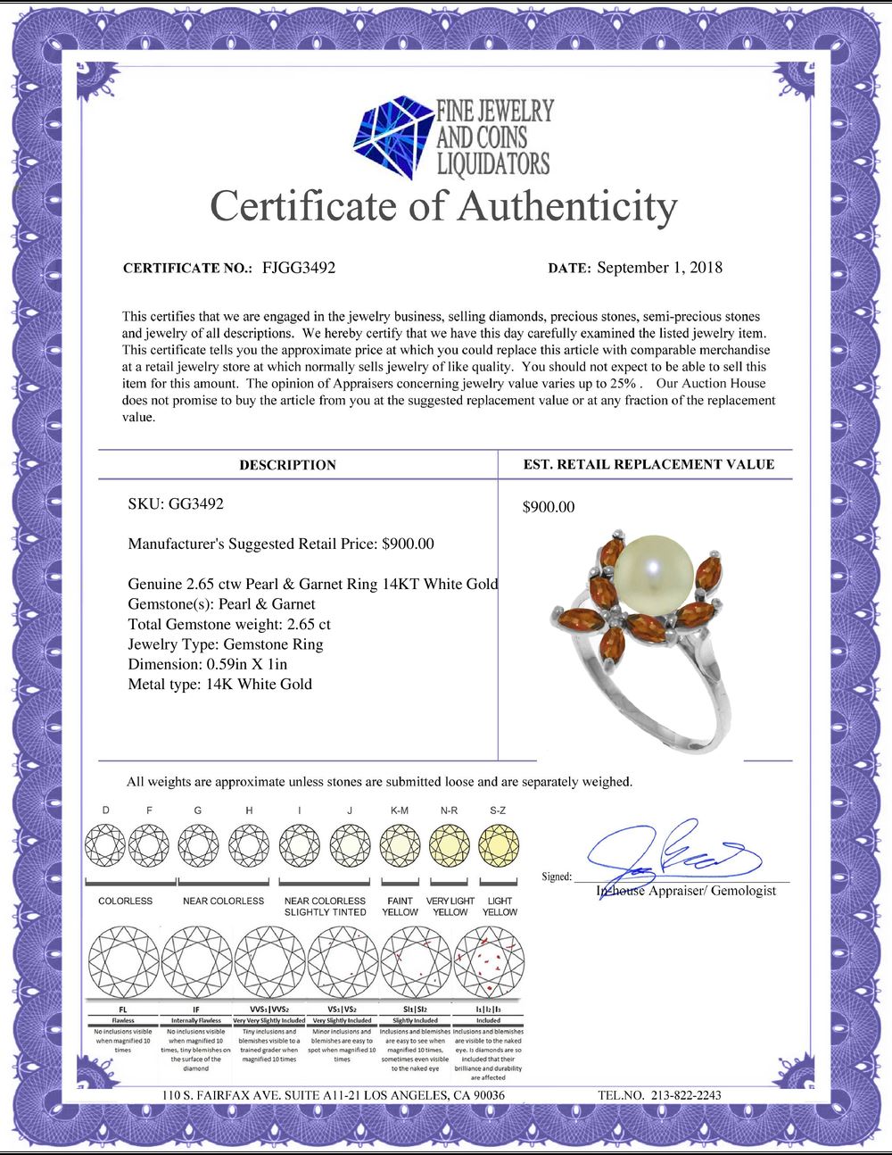 REF-28V5W - SKU: GG3492 ---- Genuine 2.65 ctw Pearl & Garnet Ring 14KT Rose Gold