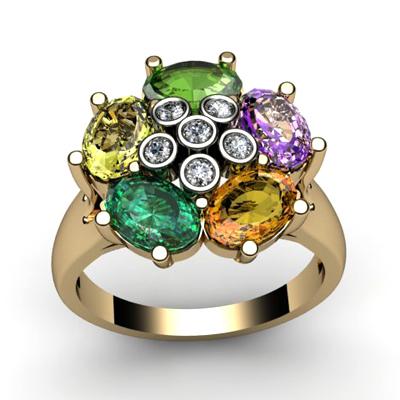Total Carat Weight: 2.7 ; Multi-color Precious Stone: Peridot, Citrine, Emerald, Orange Sapphire, Amethyst ; Metal: White or Yellow Gold ; Metal Purity: 14k ; Weight(g): 5.57 ; Diamond Count 1: 5 ROUND CUT ; Diamond CTW 1: 0.18 ; Diamond Clarity: SI-I ; MSRP: $2334