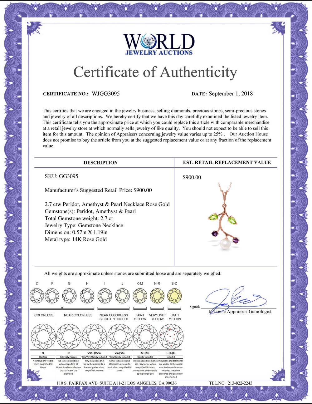 REF-29Y7F - SKU: GG3095 ---- Genuine 2.7 ctw Peridot, Amethyst & Pearl Necklace 14KT Rose Gold