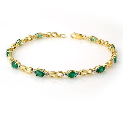 Genuine 2.76 ctw Emerald & Diamond Bracelet Yellow Gold * MSRP $1140 ---- Diamond: 1 Round cut @ 0.01 ctw---- Clarity: SI-I---- Color: H-K----Gemstone: Natural Emerald----Gemstone color: Green----Gemstone quality: Good-to-Very Good----Gemstone Cut & Weight: 10 Oval cut @ 2.75 ctw----Metal Purity & Color : 10K Gold-Yellow----Gold weight: 3.90 grams----Dimension: Approx. 7 x 1/8----Shipping: Within 15 business days