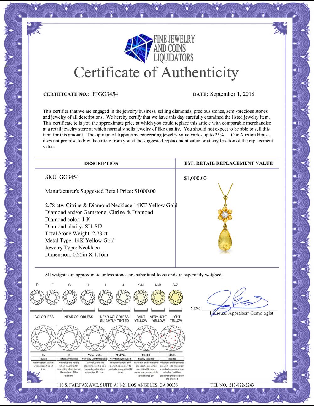 REF-31P2H - SKU: GG3454 ---- Genuine 2.78 ctw Citrine & Diamond Necklace 14KT Yellow Gold