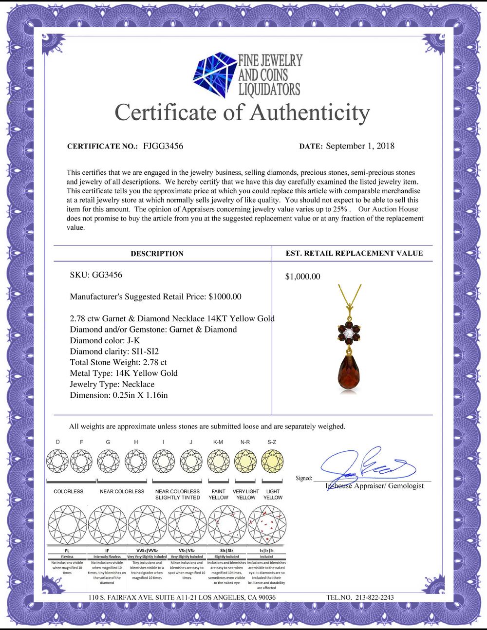 REF-31N2R - SKU: GG3456 ---- Genuine 2.78 ctw Garnet & Diamond Necklace 14KT Yellow Gold