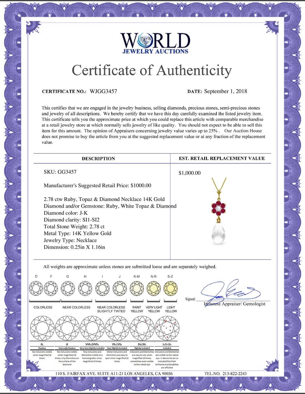 REF-32Z4N - SKU: GG3457 ---- Genuine 2.78 ctw Ruby, White Topaz & Diamond Necklace 14KT Yellow Gold