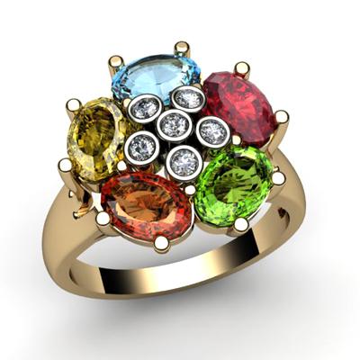 Total Carat Weight: 2.85 ; Multi-color Precious Stone: Ruby, Citrine, Topaz, Garnet, Green Tourmaline ; Metal: White or Yellow Gold ; Metal Purity: 14k ; Weight(g): 5.57 ; Diamond Count 1: 5 ROUND CUT ; Diamond CTW 1: 0.18 ; Diamond Clarity: SI-I ; ; MSRP: $2195