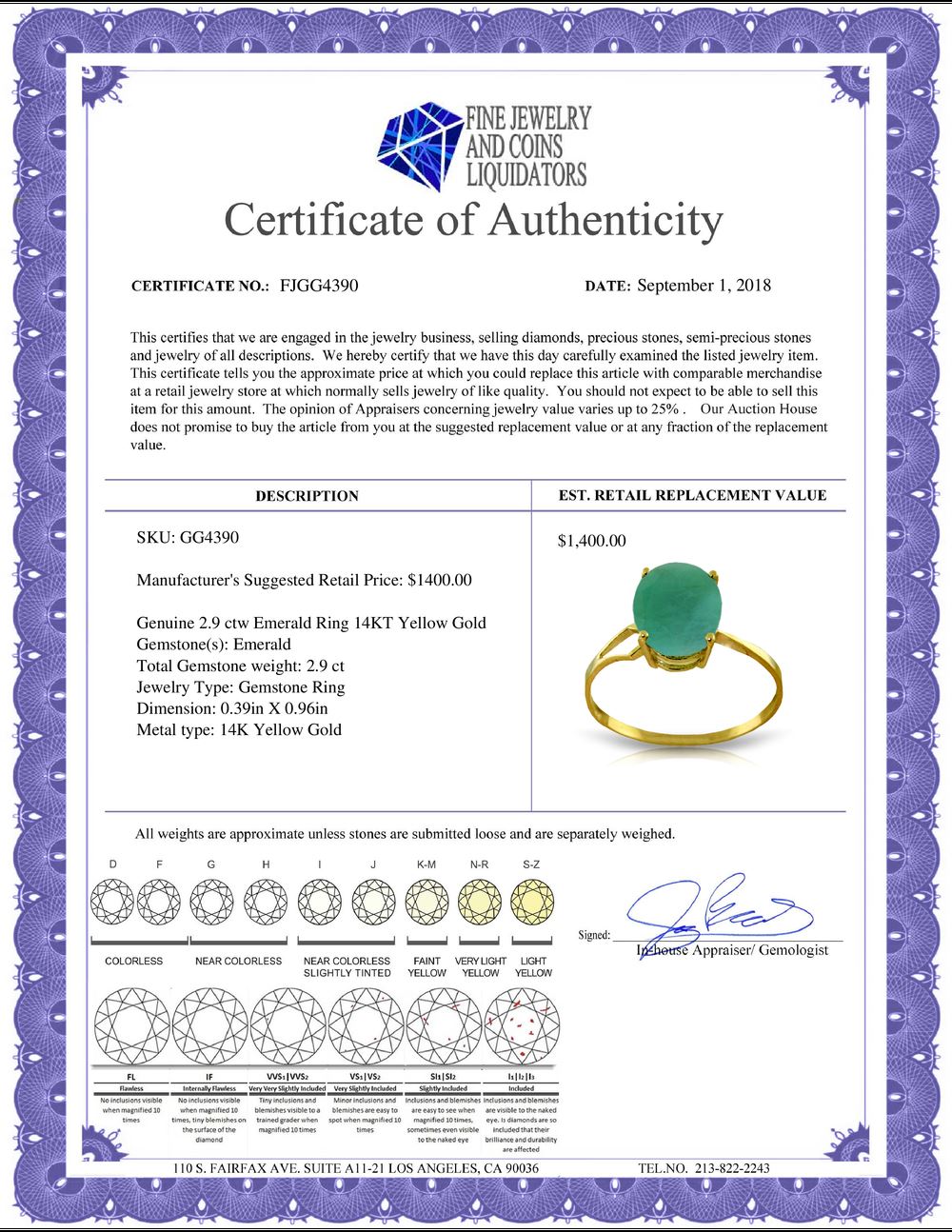REF-44V3W - SKU: GG4390 ---- Genuine 2.9 ctw Emerald Ring 14KT Yellow Gold
