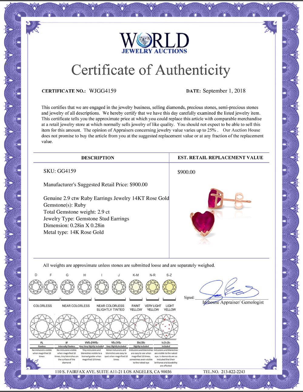 REF-27W6Y - SKU: GG4159 ---- Genuine 2.9 ctw Ruby Earrings 14KT Rose Gold