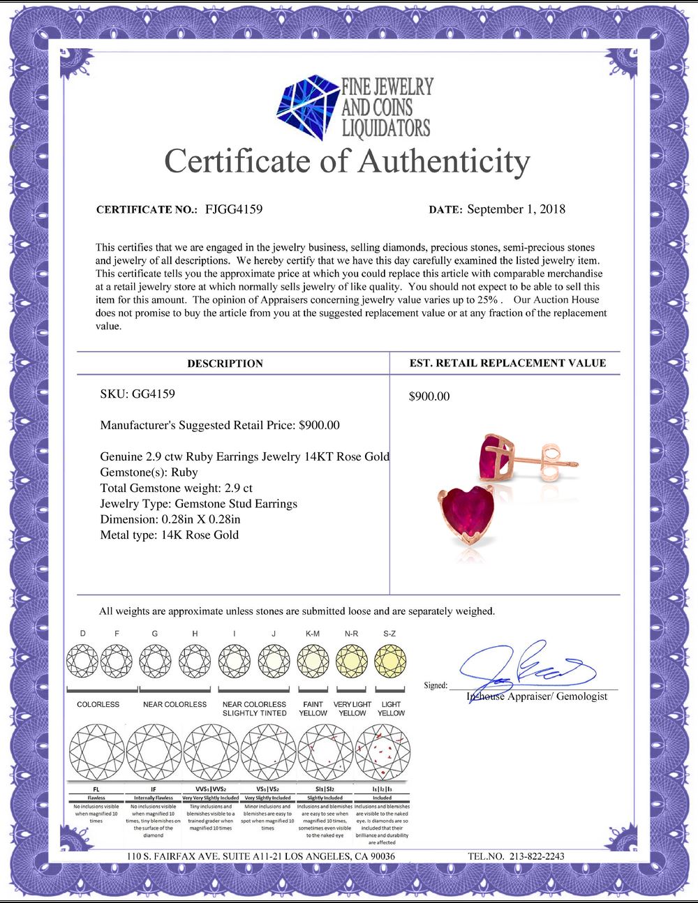 REF-27W6Y - SKU: GG4159 ---- Genuine 2.9 ctw Ruby Earrings 14KT Rose Gold