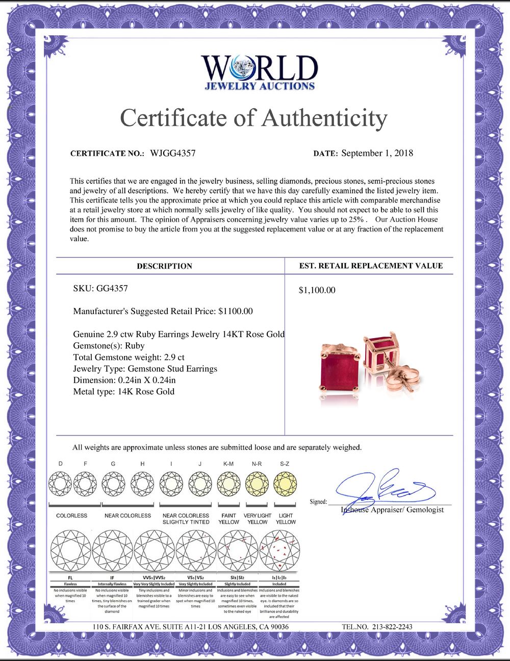 REF-36R3P - SKU: GG4357 ---- Genuine 2.9 ctw Ruby Earrings 14KT Rose Gold