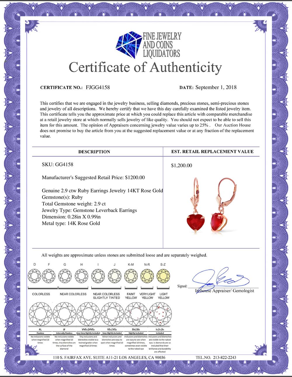 REF-39T3A - SKU: GG4158 ---- Genuine 2.9 ctw Ruby Earrings 14KT White Gold