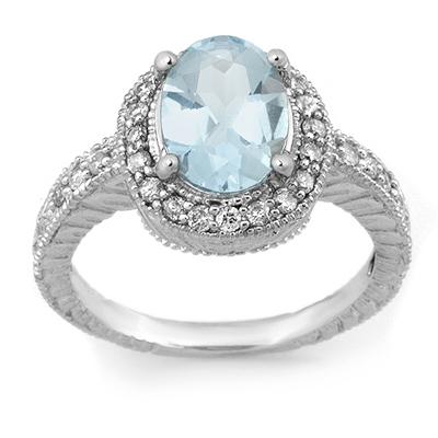 Diamond: 26 Round cut @ 0.40 ctw---- Clarity: SI-I---- Color: H-K----Gemstone: Natural Aquamarine----Gemstone color: Aqua----Gemstone quality: Good-to-Very Good----Gemstone Cut & Weight: 1 Oval cut @ 2.50 ctw----Metal Purity & Color : 14K Gold-White----Gold weight: 5.0 grams----Ring size (US): 6.75----Dimension: Approx. 1/2 x 3/4----Consignor: World Jewelry Outlet----Delivery: Within 10 business days