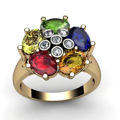 Total Carat Weight: 2.93 ; Multi-color Precious Stone: Peridot, Citrine, Ruby, Orange Sapphire, Blue Sapphire ; Metal: White or Yellow Gold ; Metal Purity: 10k ; Weight(g): 5.57 ; Diamond Count 1: 5 ROUND CUT ; Diamond CTW 1: 0.18 ; Diamond Clarity: SI-I ; Diamond Color: G-H ; Gem Count 1: 5 OVAL CUT ; Gem Carat Weight 1: ; Clarity Rating: AA-AAA ; Gem Size(mm): approx. 6x4mm ; Ring Size: 6.5 ; MSRP: $2655