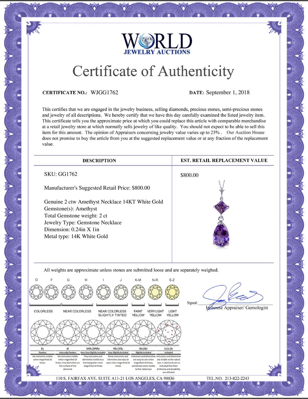 REF-24V3W - SKU: GG1762 ---- Genuine 2 ctw Amethyst Necklace 14KT Rose Gold