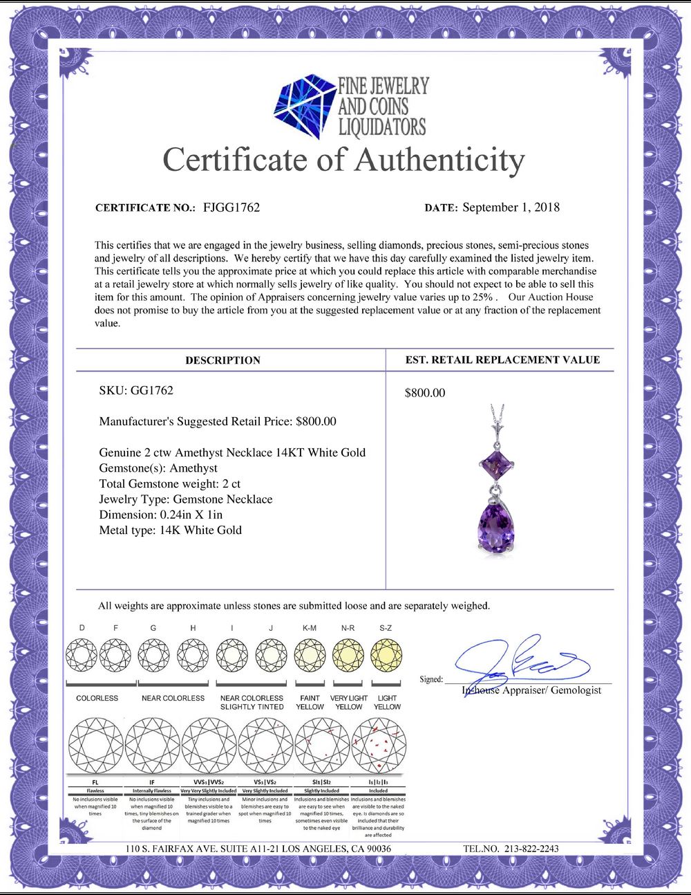 All Gia and EGL Diamonds are subject to availability due to consignors’ terms with us.