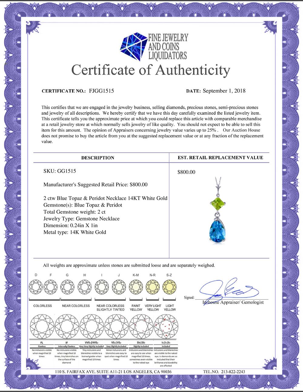 REF-24N3R - SKU: GG1515 ---- Genuine 2 ctw Blue Topaz & Peridot Necklace 14KT Rose Gold