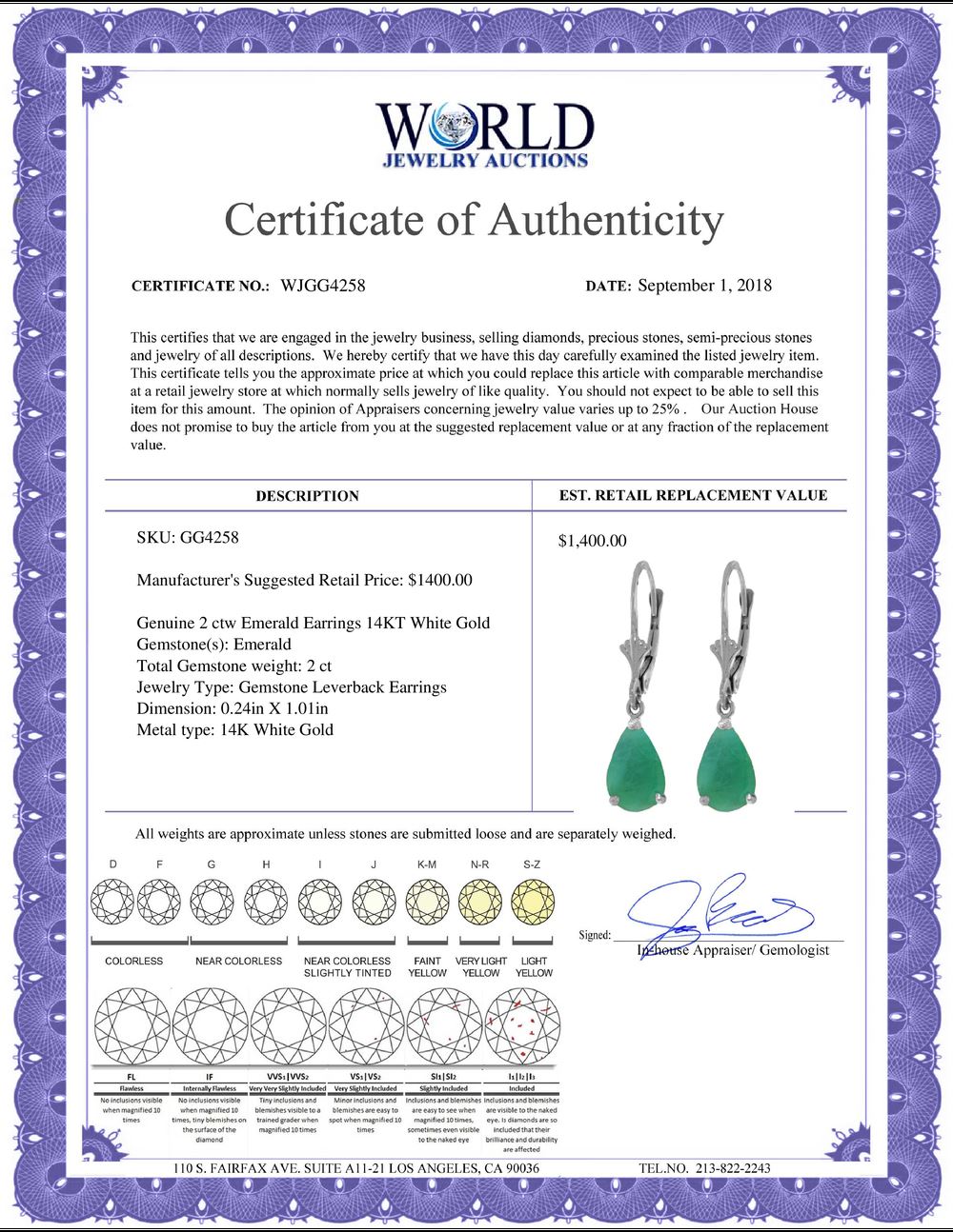 REF-43M9T - SKU: GG4258 ---- Genuine 2 ctw Emerald Earrings 14KT Rose Gold