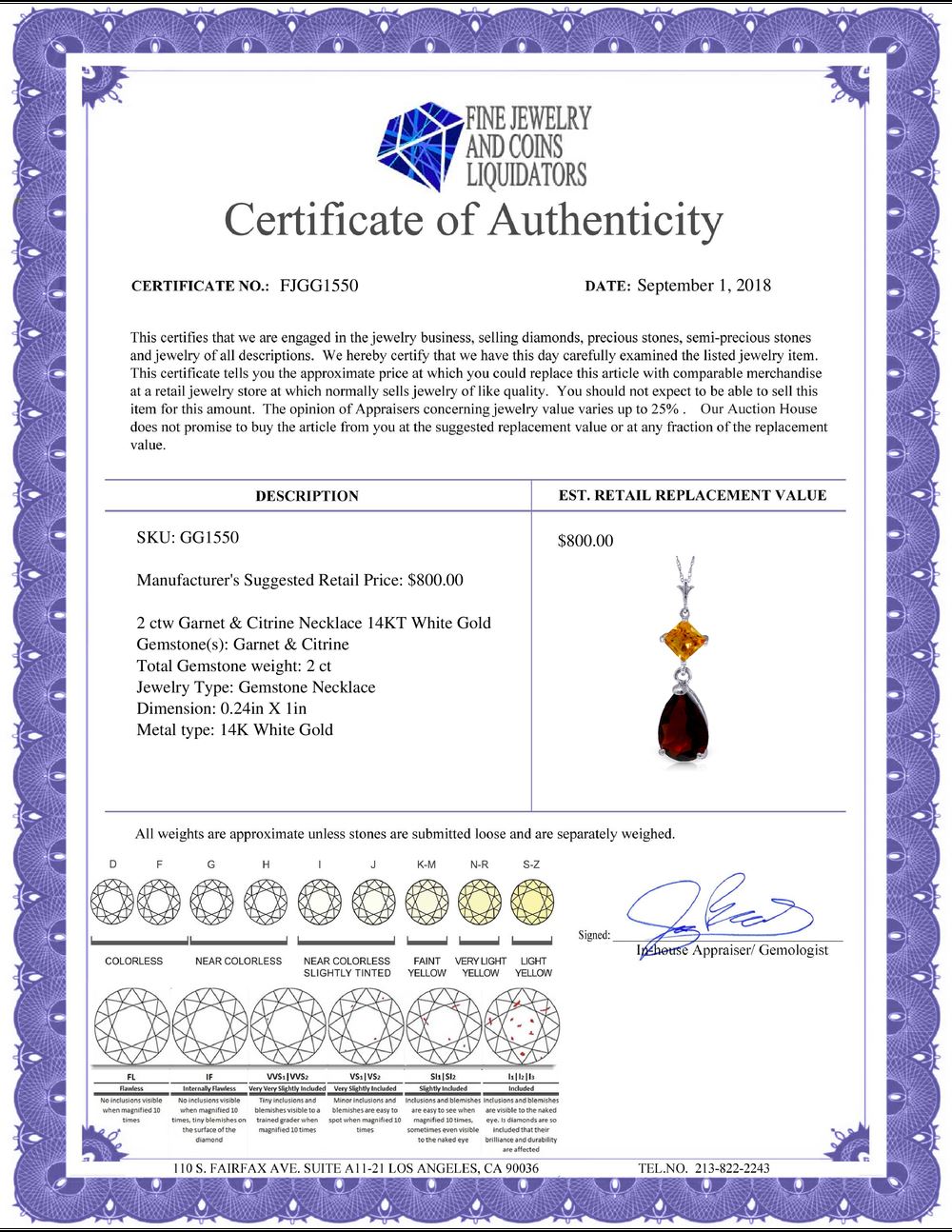 REF-24P3H - SKU: GG1550 ---- Genuine 2 ctw Garnet & Citrine Necklace 14KT Rose Gold