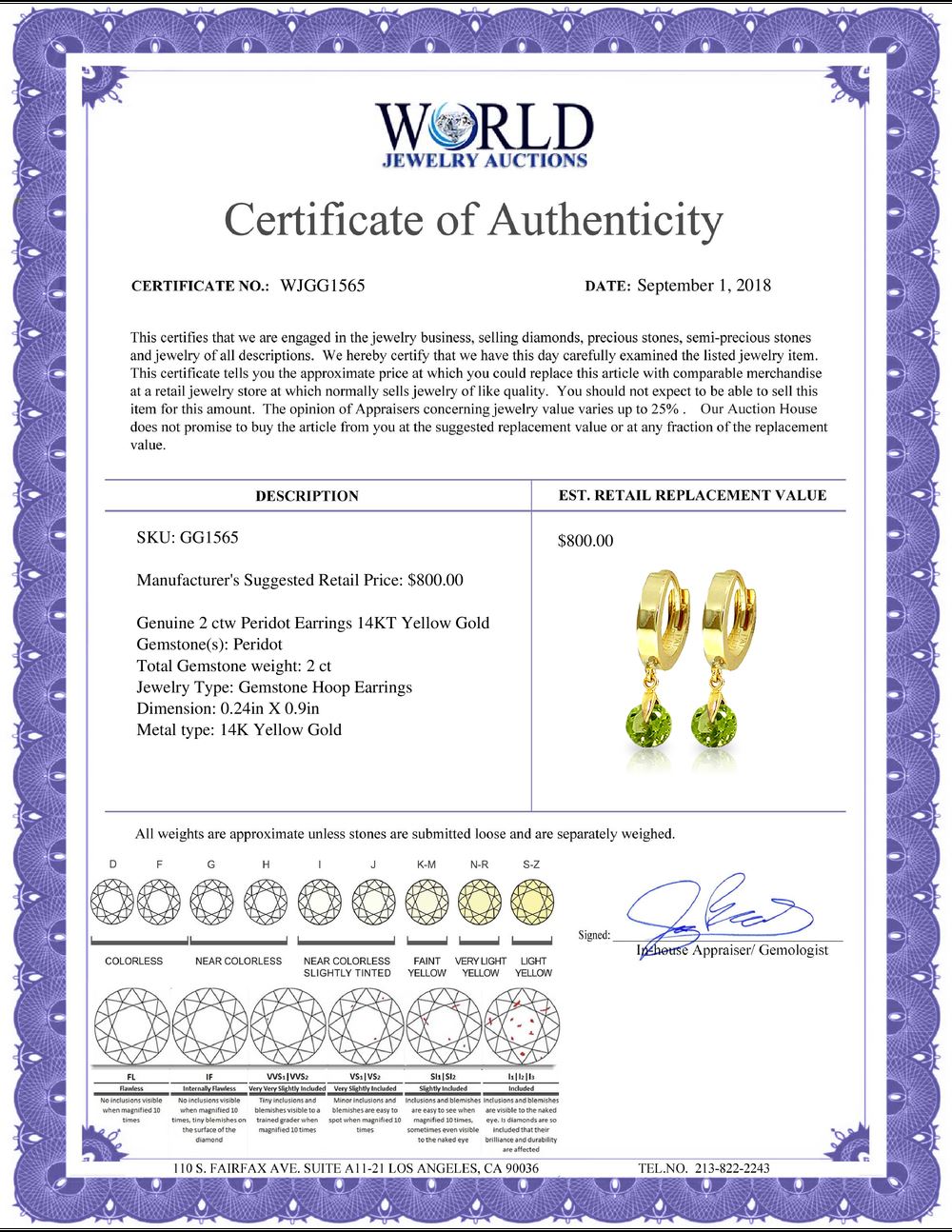 Genuine 14K Yellow Gold 2 ctw Peridot Earrings