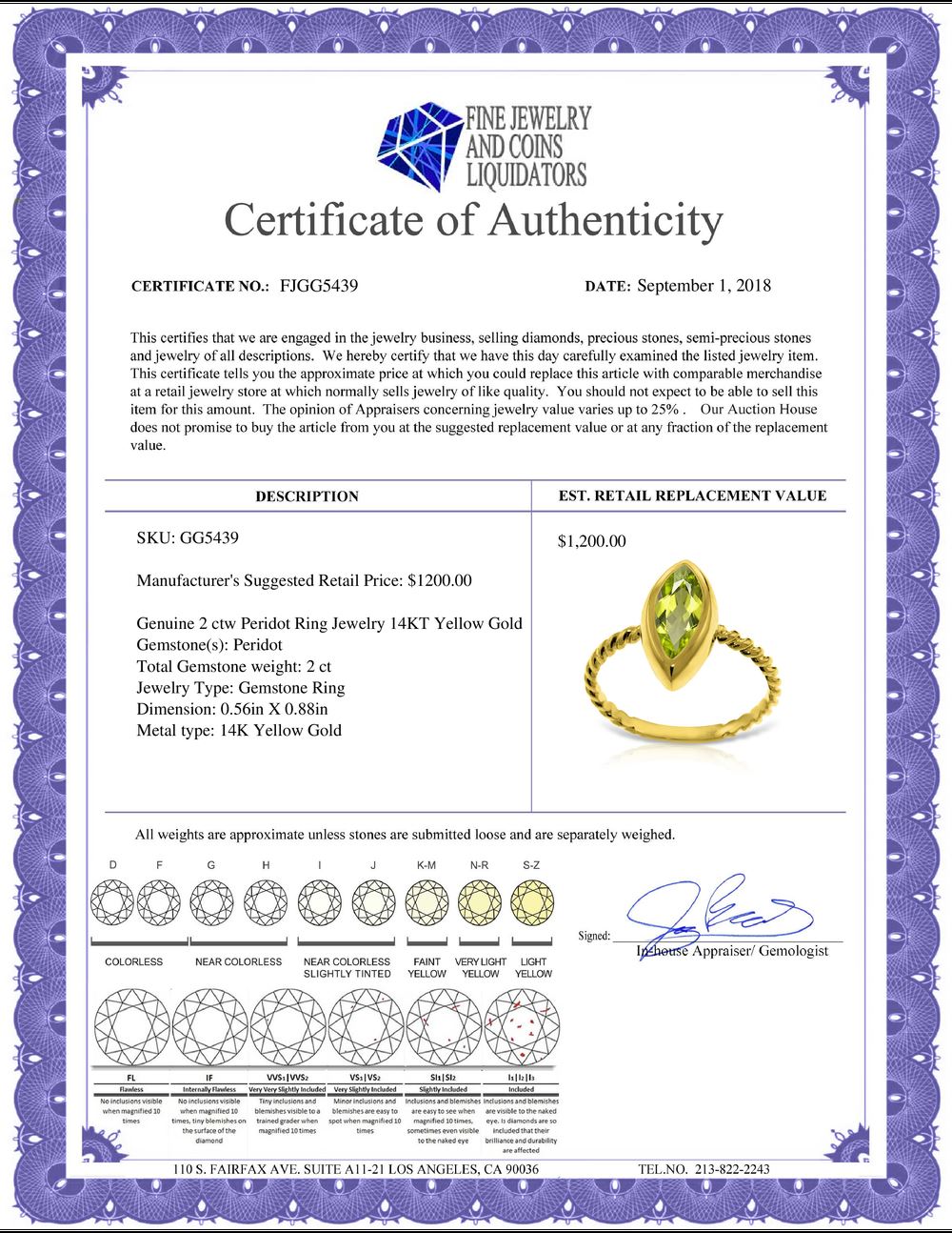 Genuine 14K Yellow Gold 2 ctw Peridot Ring