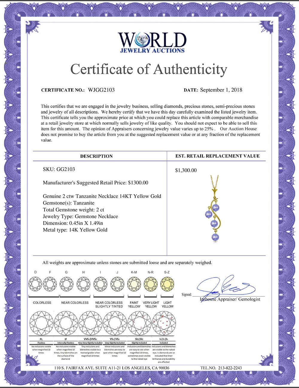 REF-40F5Z - SKU: GG2103 ---- Genuine 2 ctw Tanzanite Necklace 14KT Yellow Gold