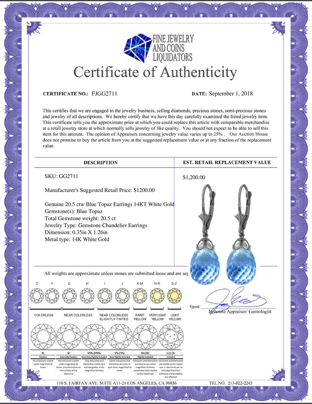 REF-36P8H - SKU: GG2711 ---- Genuine 20.5 ctw Blue Topaz Earrings 14KT Rose Gold