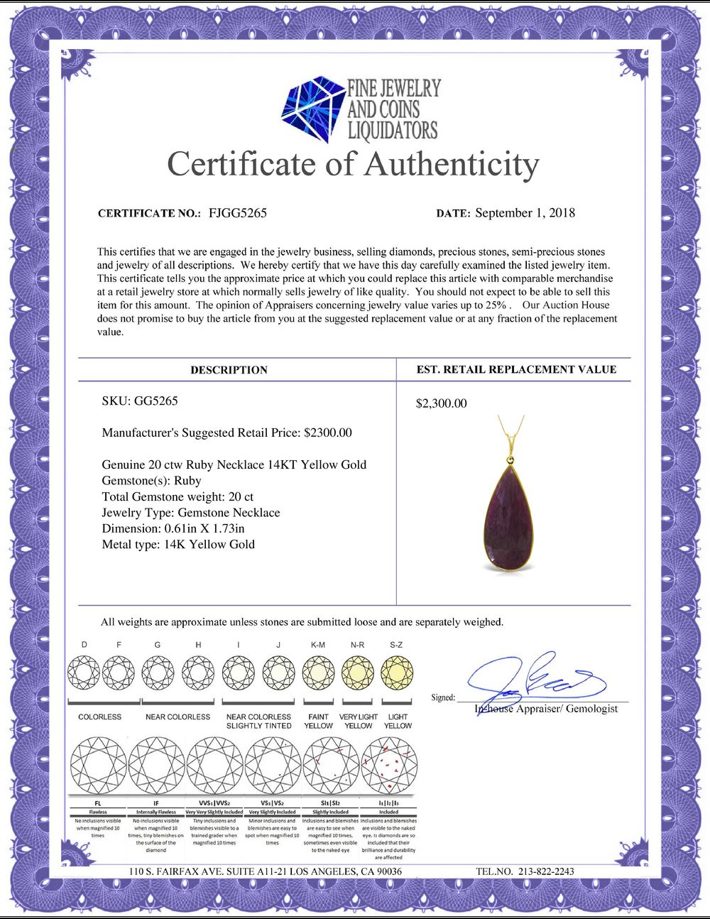 Genuine 14K Yellow Gold 20 ctw Ruby Necklace