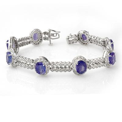 Diamond: 216 Round cut @ 3.25 ctw---- Clarity: SI-I---- Color: H-K----Gemstone: Natural Tanzanite----Gemstone color: Purple----Gemstone quality: Good-to-Very Good----Gemstone Cut & Weight: 8 Oval cut @ 18.0 ctw----Metal Purity & Color : 14K Gold-White----Gold weight: 30 grams----Dimension: Approx. 7 3/4 x 1/2Consignor: World Jewelry Outlet----Delivery: Within 10 business days