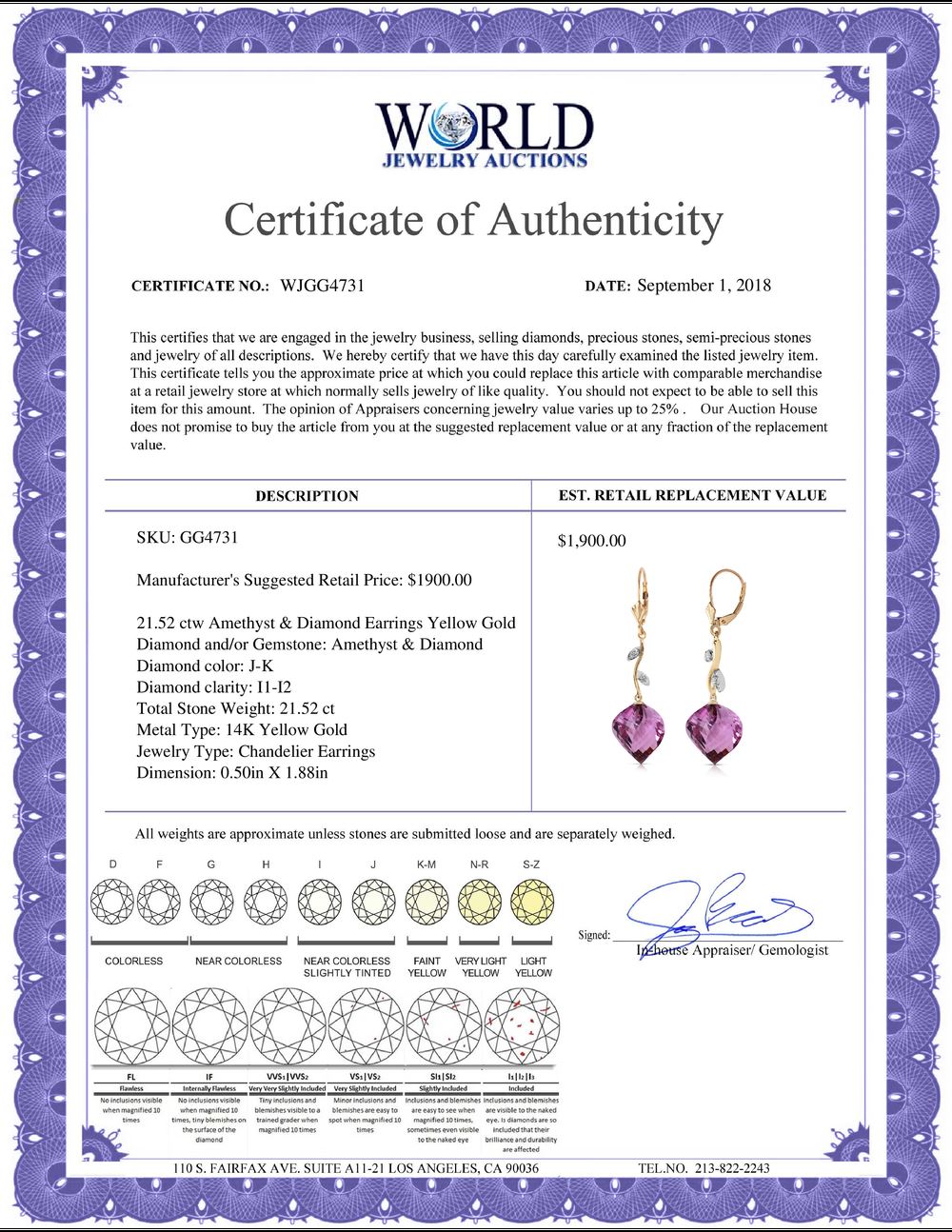 REF-60W4Y - SKU: GG4731 ---- Genuine 21.52 ctw Amethyst & Diamond Earrings 14KT Yellow Gold