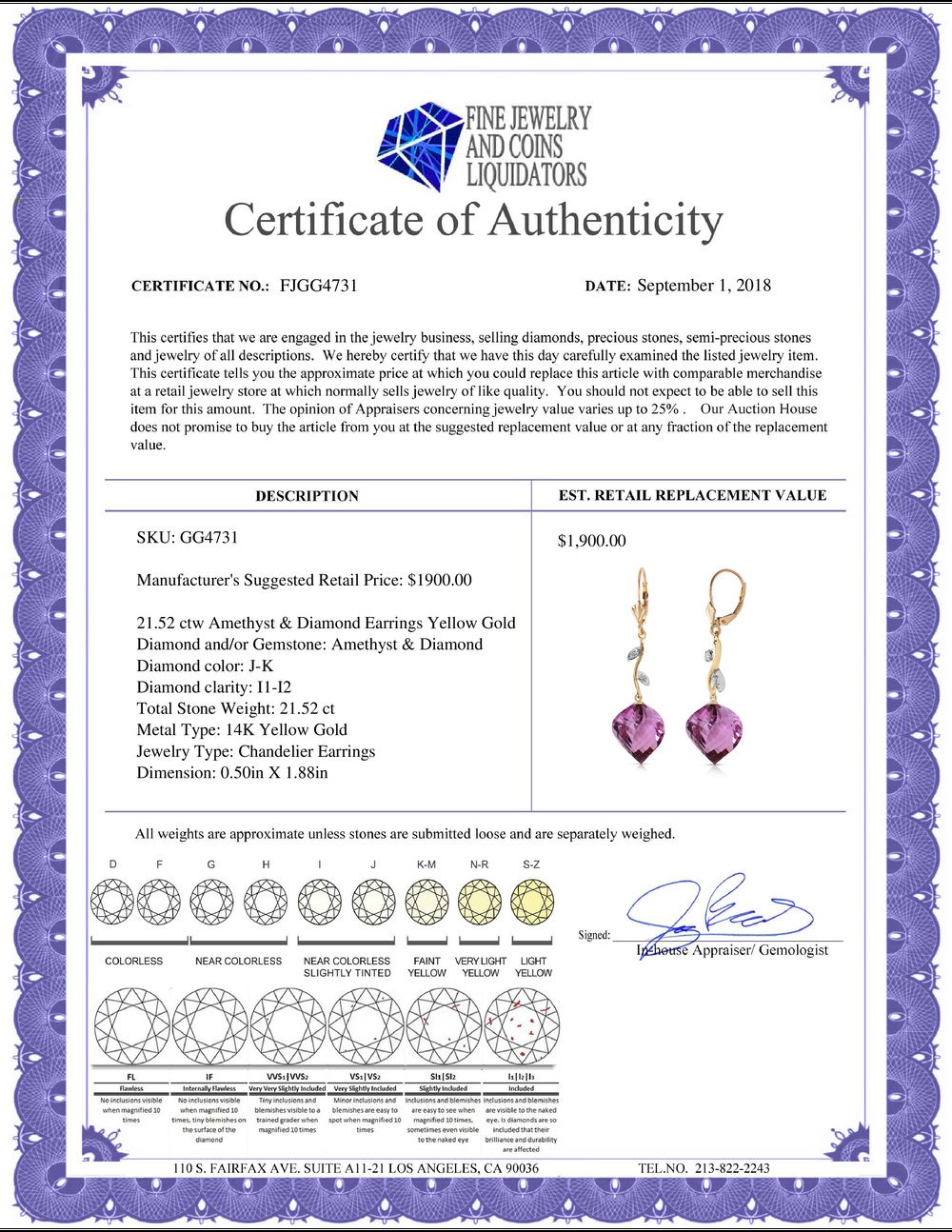 REF-60W4Y - SKU: GG4731 ---- Genuine 21.52 ctw Amethyst & Diamond Earrings 14KT Yellow Gold