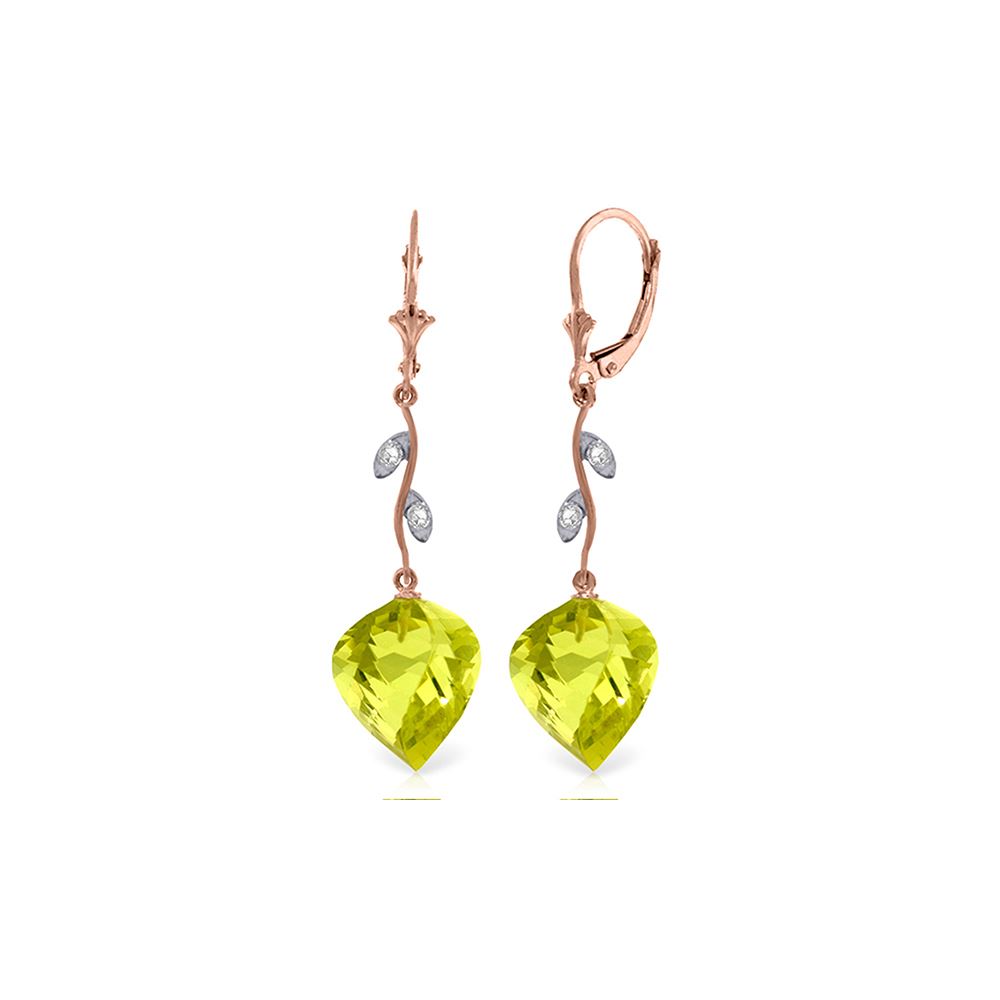 REF-57Y6F - SKU: GG4736 ---- Genuine 21.52 ctw Lemon Quartz & Diamond Earrings 14KT Rose Gold