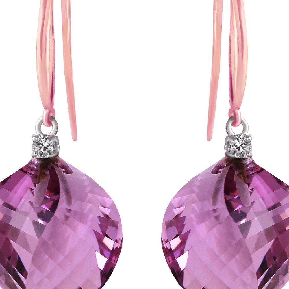 Genuine 14K Rose Gold 21.6 ctw Amethyst & Diamond Earrings
