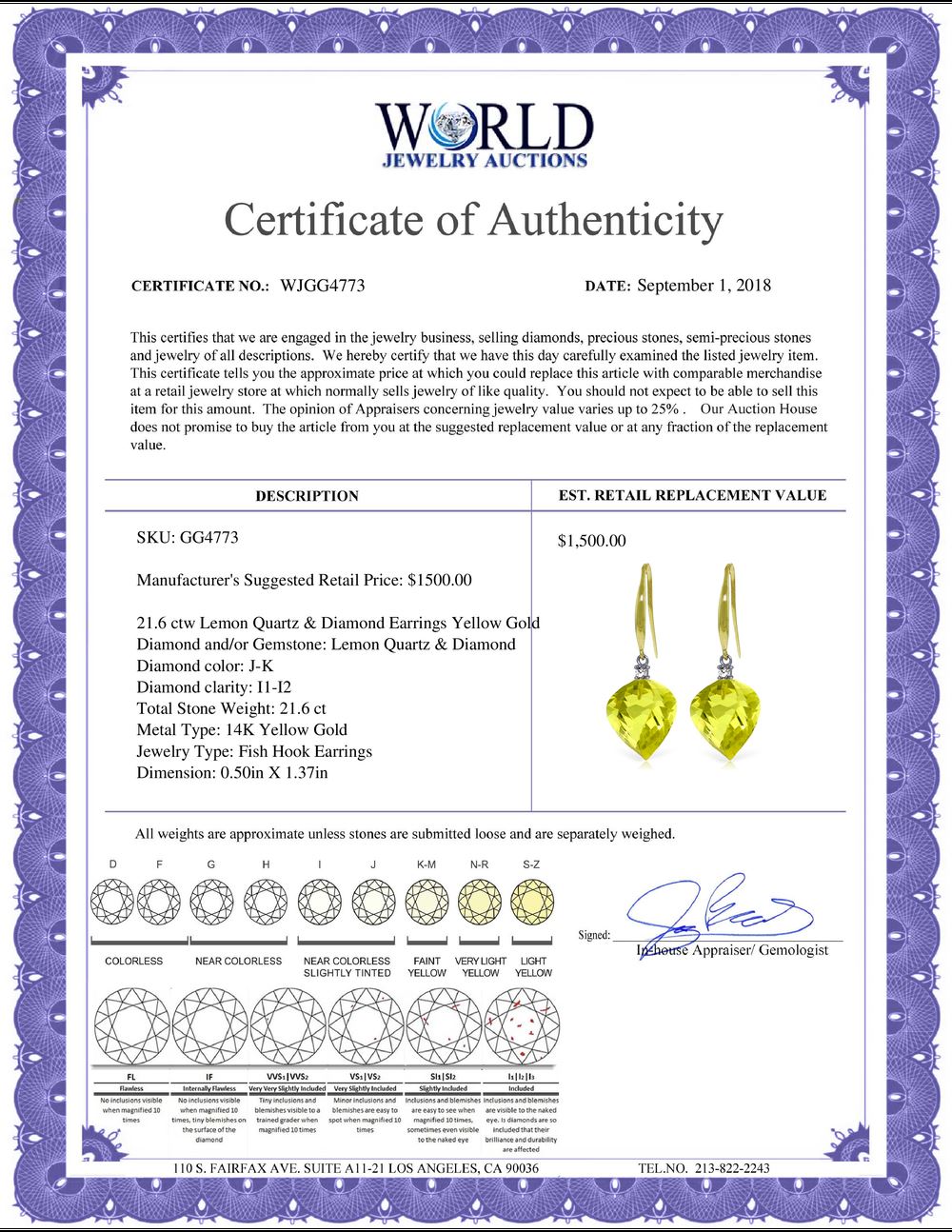 REF-46N7R - SKU: GG4773 ---- Genuine 21.6 ctw Lemon Quartz & Diamond Earrings 14KT Yellow Gold
