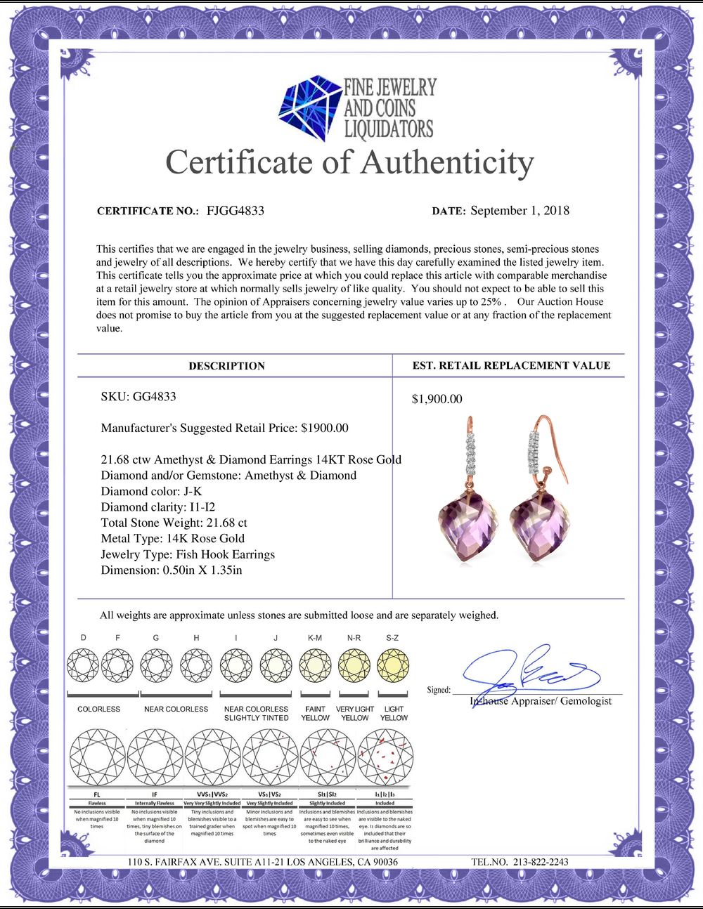 REF-61N3R - SKU: GG4833 ---- Genuine 21.68 ctw Amethyst & Diamond Earrings 14KT White Gold