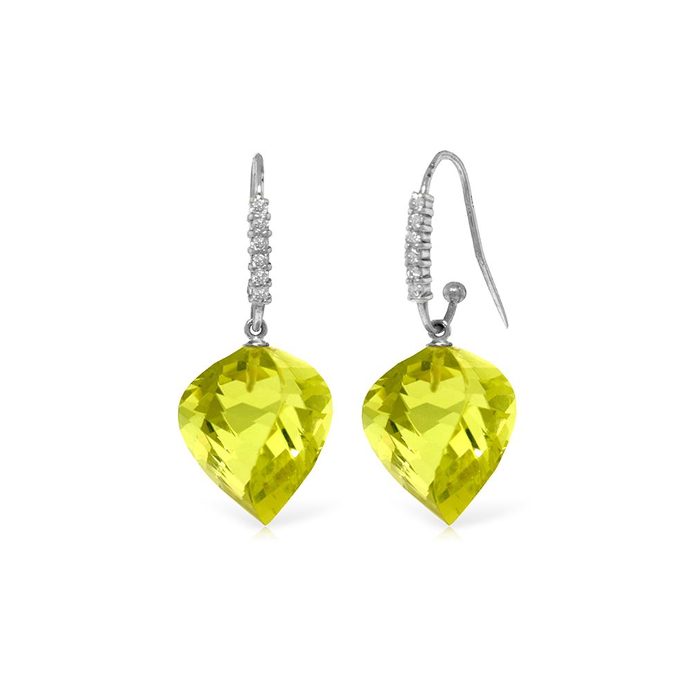 Genuine 14K White Gold 21.68 ctw Lemon Quartz & Diamond Earrings
