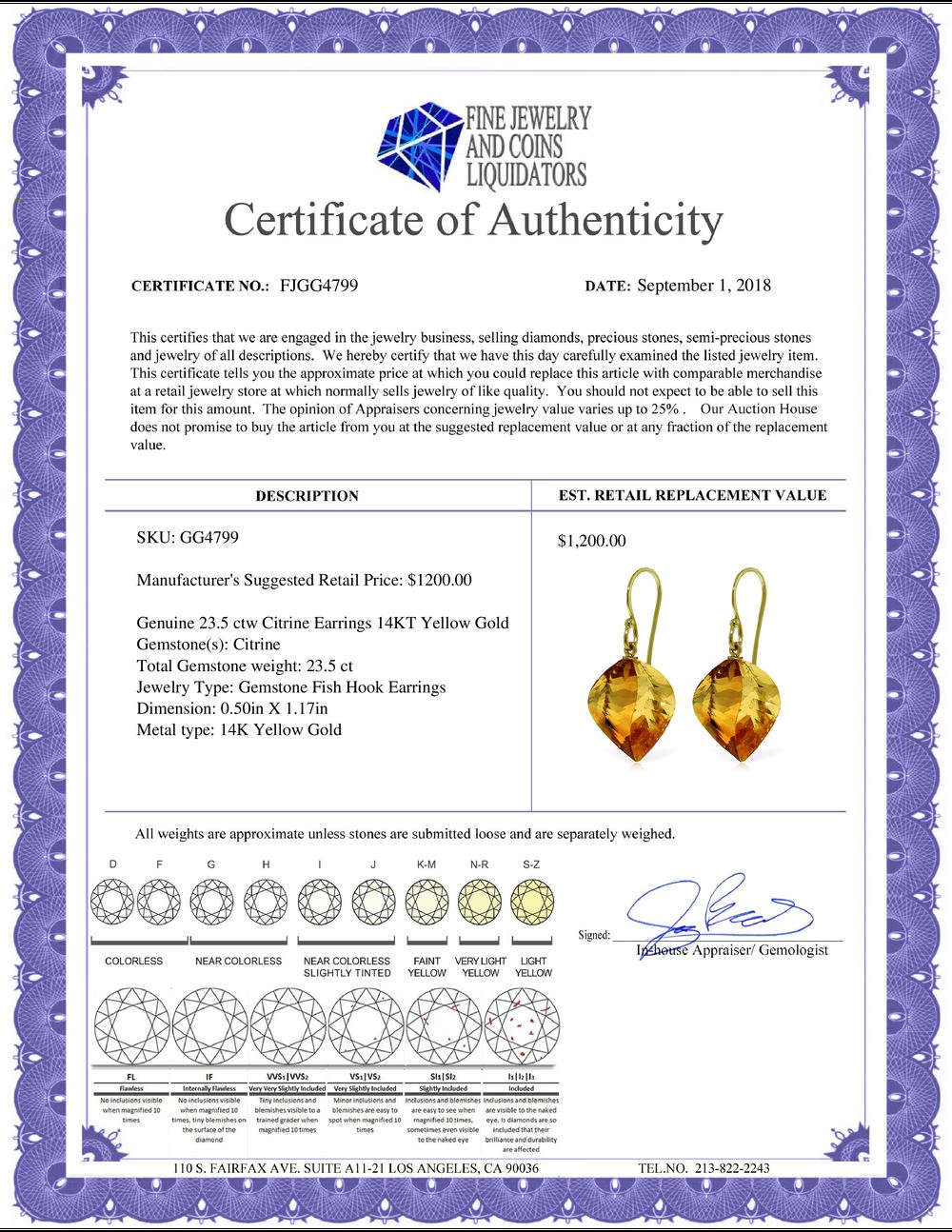 REF-39A3K - SKU: GG4799 ---- Genuine 23.5 ctw Citrine Earrings 14KT Yellow Gold
