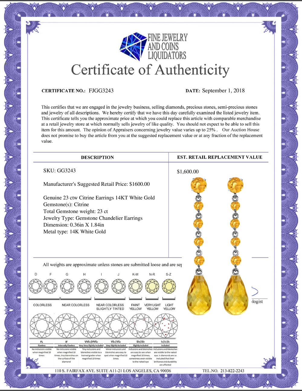 REF-50P6H - SKU: GG3243 ---- Genuine 23 ctw Citrine Earrings 14KT White Gold