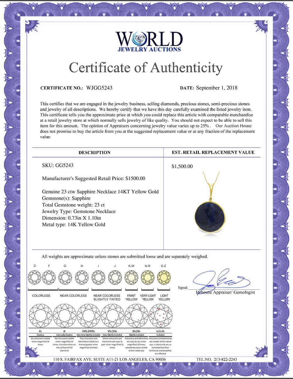 REF-48A3K - SKU: GG5243 ---- Genuine 23 ctw Sapphire Necklace 14KT Yellow Gold