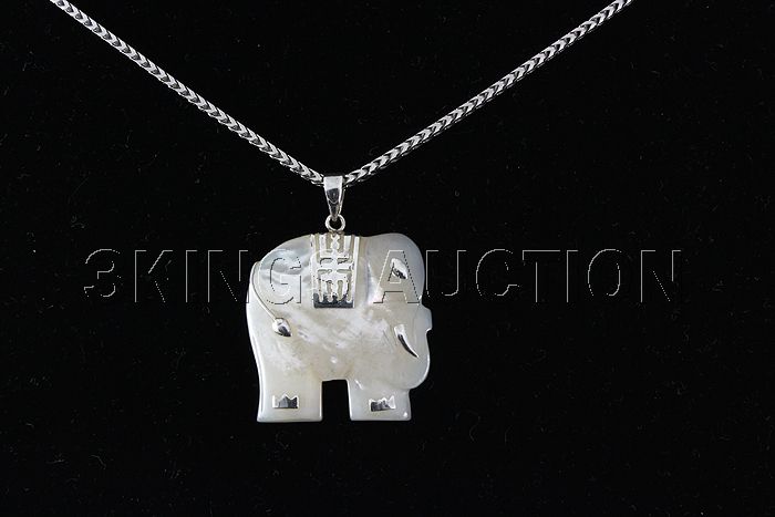 Genuine 24.31ctw Elephant White Jade Pendant **|**|** Good Fortune 14KGP (Gold Plated) Silver Elephant White Jade Pendant measuring 24.18x23.46mm ; MSRP: $300