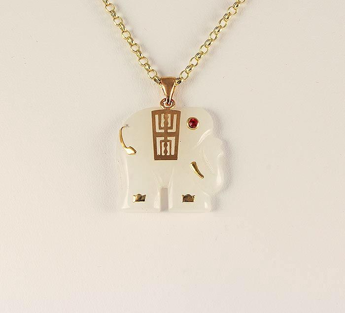 Genuine 24.31ctw Elephant White Jade Pendant **|**|** Good Fortune 14KGP (Gold Plated) Silver Elephant White Jade Pendant measuring 24.18x23.46mm ; MSRP: $300